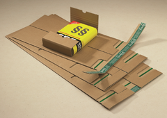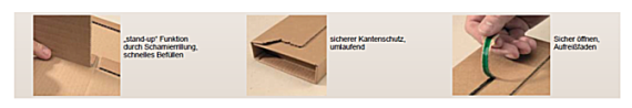 -zentrale Packgutaufnahme mit "stand-up"-Funktion durch Scharnierrillung