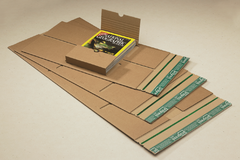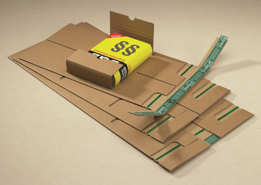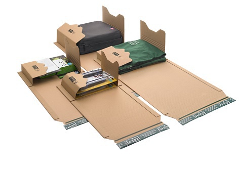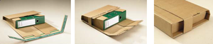 mit zentraler Packgutaufnahme und seitlichen Schutzlaschen aus extrem stabiler doppelter Wellpappe, variable Füllhöhe, braun